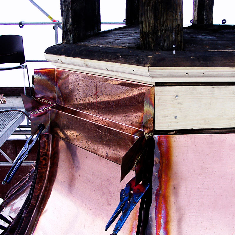 Restaurering af kobbertårn, udskiftning af beklædning.