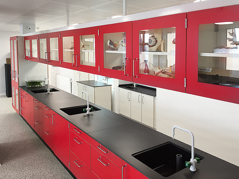 Indretning af biologi- og geografi-lokaler i tagetagen.